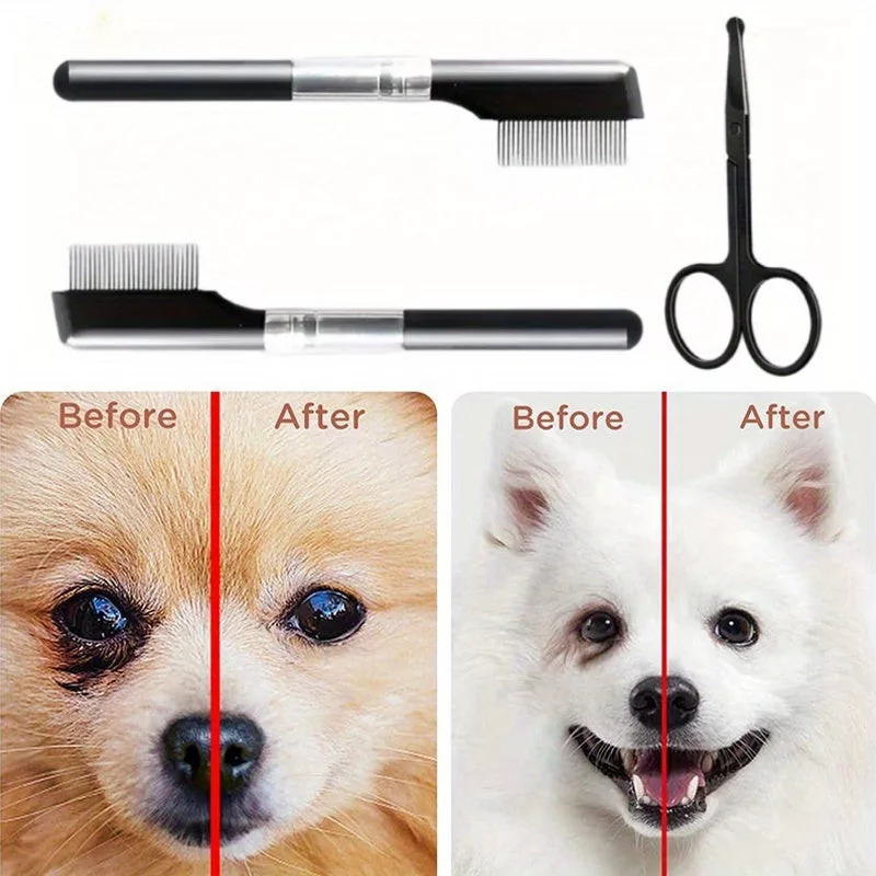 Pflege-Set für Kleintiere: Tränenflecken-Entfernungskamm und Fellschere
