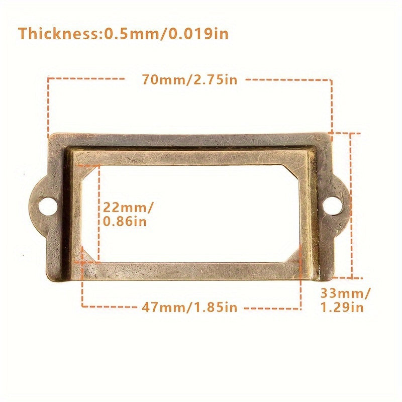 • (Material) Langlebiges Messing: Das hochwertige Messingmaterial sorgt für eine lange Lebensdauer und Widerstandsfähigkeit der Etikettenhalter.