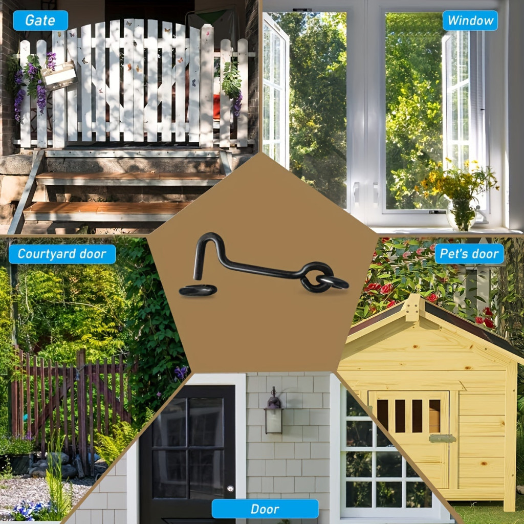 Entdecke den Türhakenriegel aus Kohlenstoffstahl mit 5 Haken und Befestigungsschrauben – die perfekte Wahl für alle, die eine zuverlässige und langlebige Lösung zur Erhöhung der Sicherheit in ihrem Zuhause oder am Arbeitsplatz suchen. Dieser robuste Türhakenriegel besteht aus hochwertigem Kohlenstoffstahl, der Langlebigkeit und maximalen Schutz garantiert. Er lässt sich mühelos montieren, sodass du deine Türen, Tore oder Fenster schnell und einfach sichern kannst.