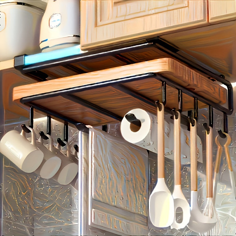 Platzsparendes Küchenhakenregal mit Schneidebrett, Deckel und Schranktürhaken