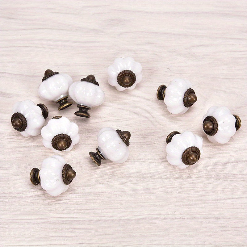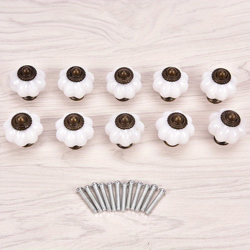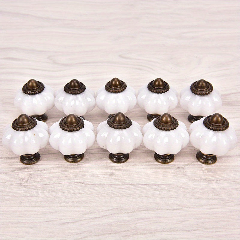 10 Kürbisförmige Schubladengriffe mit antiker Messingverzierung
