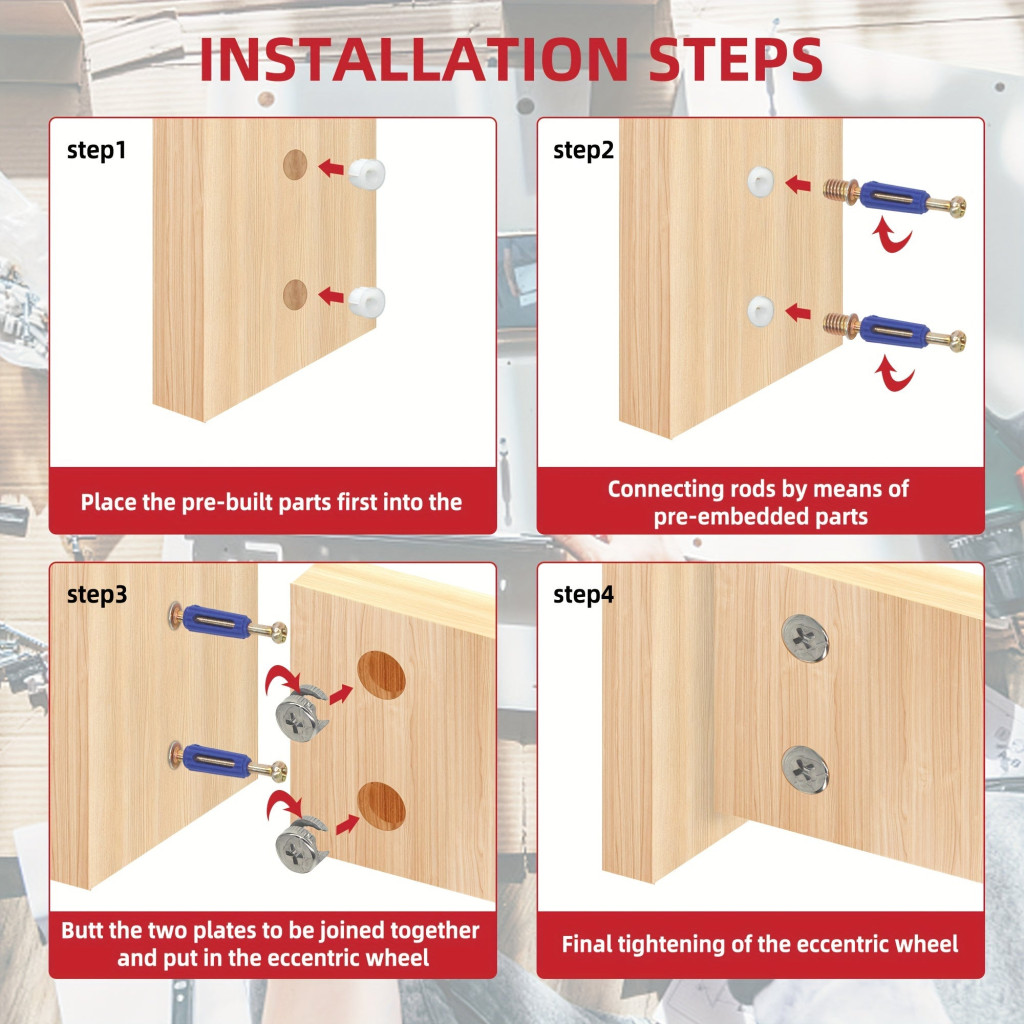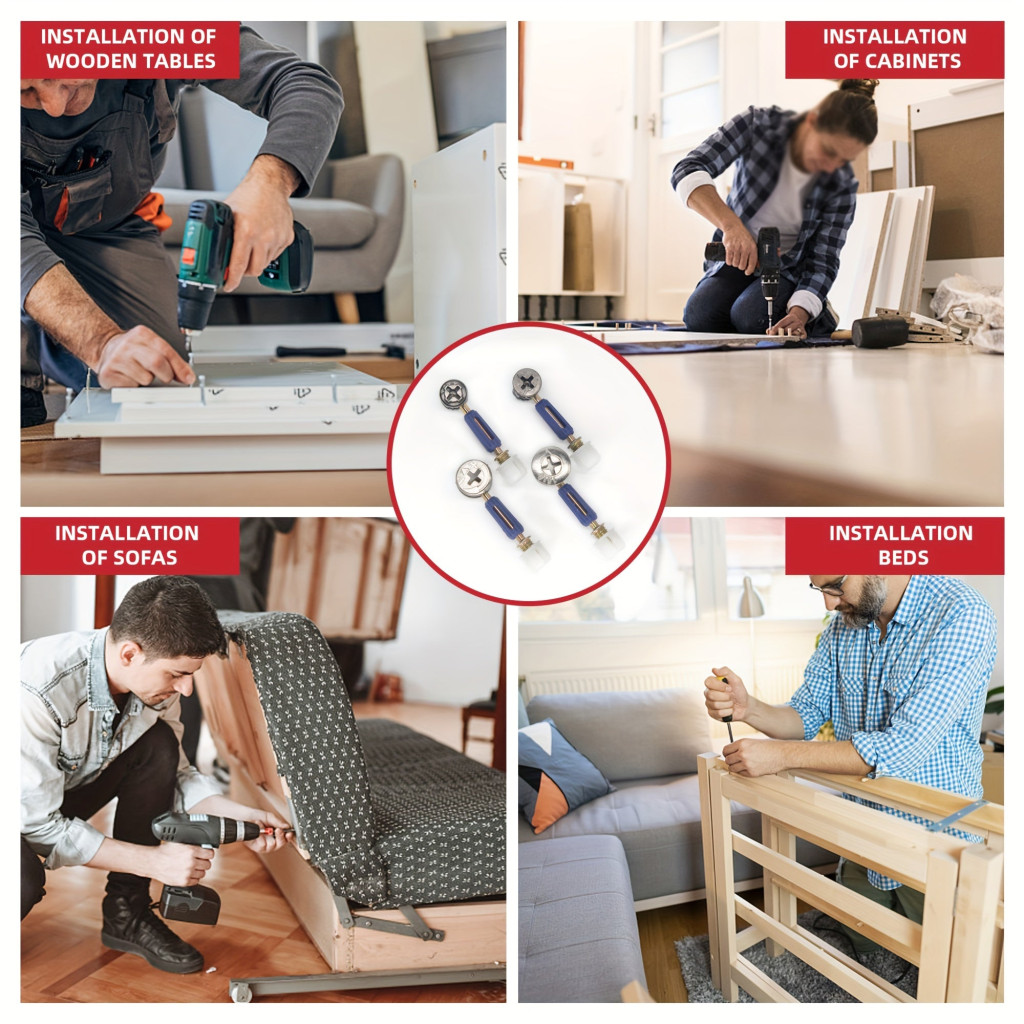 Dank der 3-in-1-Funktionalität ist das Set vielseitig einsetzbar für verschiedene Möbelstücke, sei es Schränke, Regale oder Tische. Die einfache Handhabung und Zuverlässigkeit garantieren, dass die Montage schnell und stressfrei verläuft. Lass komplizierte Montageaufgaben nicht im Weg stehen – mit diesem Set löst du sie im Handumdrehen!