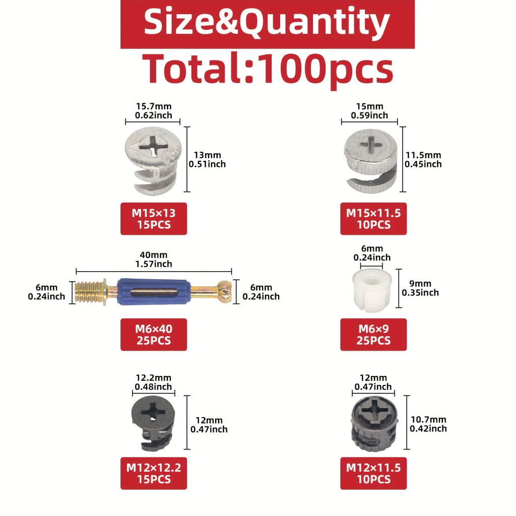 Warum dich mit komplizierten Montageproblemen herumschlagen, wenn die Lösung in greifbarer Nähe ist? Das 100-teilige 3-in-1 Möbel-Cam-Verschluss-Set ist der Traum eines jeden Heimwerkers, denn es vereinfacht die Arbeitsabläufe und sorgt für stabile Ergebnisse. Du brauchst keine verschiedenen Werkzeuge mehr, denn dieses Set enthält alles, was du brauchst. Die ideale Wahl für alle, die ihre Möbel schnell und effizient zusammenbauen oder reparieren möchten. Hol es dir jetzt und erlebe den Unterschied!