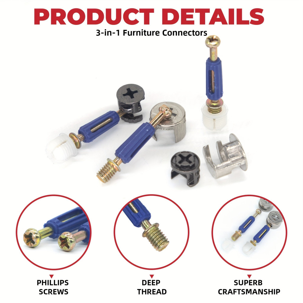 Entdecke die Vielseitigkeit mit dem 100-teiligen 3-in-1 Möbel-Cam-Verschluss-Set! Dieses praktische Set ist ein Muss für jedes Zuhause, denn es ermöglicht die einfache Montage und Stabilität deiner Möbel. Die Verschlusselemente sind aus hochwertigen Materialien gefertigt, die eine langfristige Nutzung und sichere Befestigung gewährleisten. Egal, ob du neue Möbel zusammenbaust oder bestehende reparierst, dieses Set erfüllt alle Bedürfnisse.