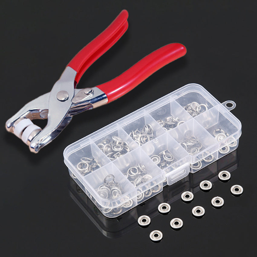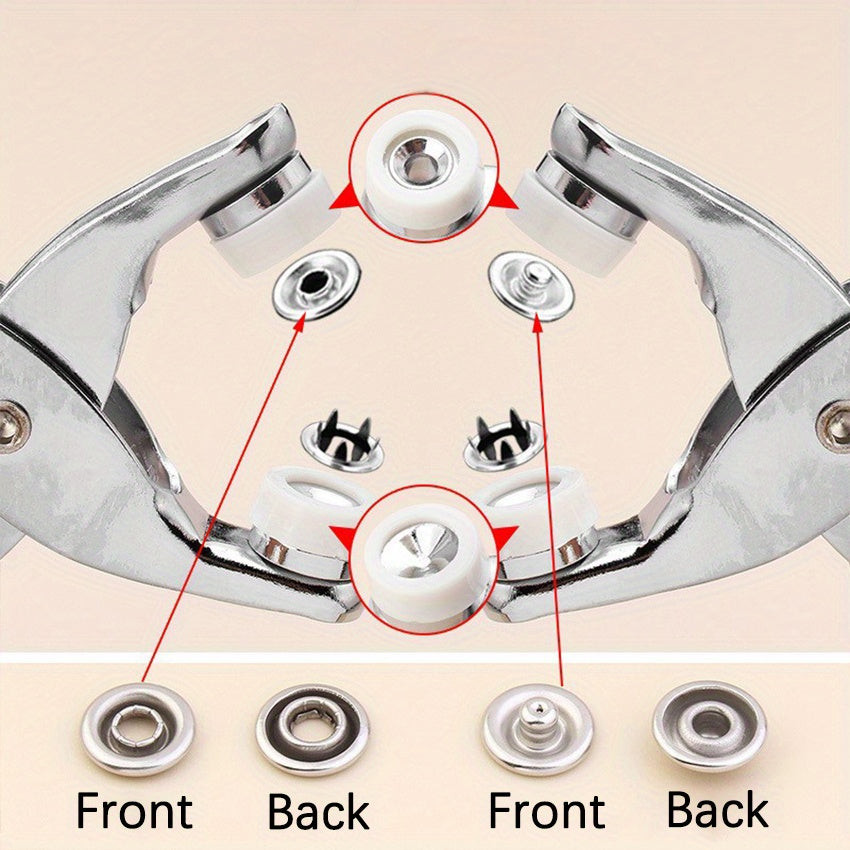 • Ergonomisches Design: Die Handpresszange bietet einen bequemen Griff, sodass das Befestigen der Knöpfe einfach und schnell ist.