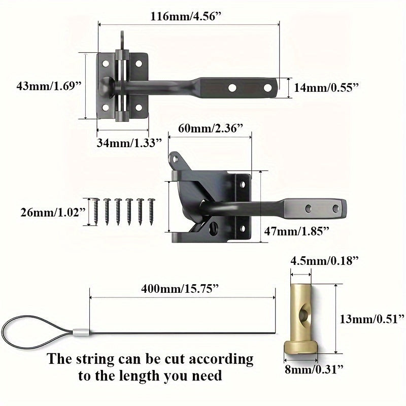 Entdecke das starke selbstverriegelnde Torverriegelungsset mit Federkabel, das ein unverzichtbares Zubehör für moderne Häuser und Gärten ist. Dieses Verriegelungsset erhöht nicht nur die Sicherheit, sondern sorgt auch für täglichen Komfort, da es sich automatisch schließt. So musst du dir keine Sorgen mehr über offen gelassene Tore machen. Das elegante und dennoch robuste Design sorgt dafür, dass dein Tor nicht nur funktional, sondern auch ästhetisch ansprechend ist.