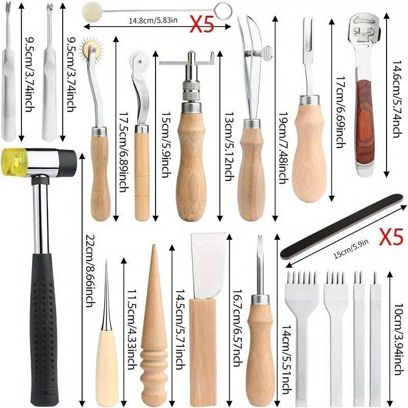 • Vielseitige Einsatzmöglichkeiten: Das Set enthält eine Vielzahl unterschiedlicher Werkzeuge, die die Umsetzung verschiedenster lederähnlicher Projekte ermöglichen.