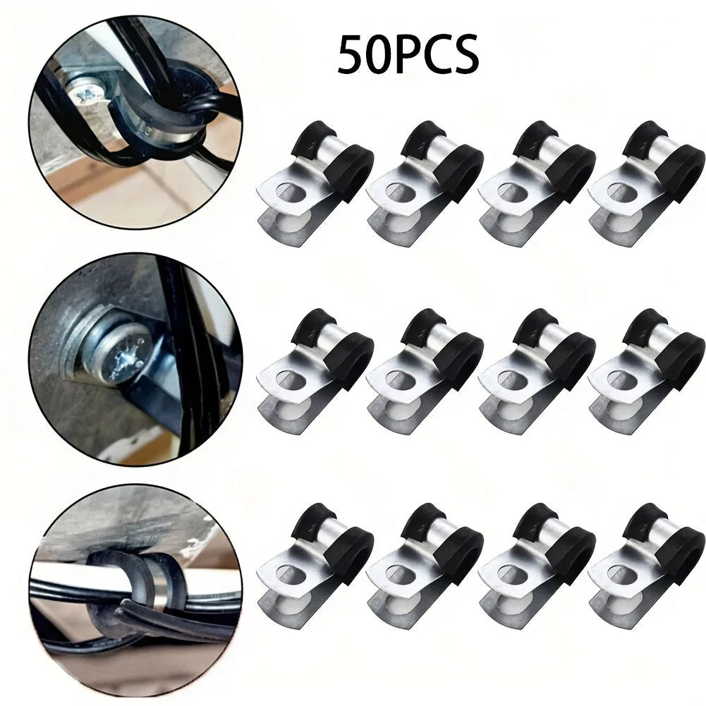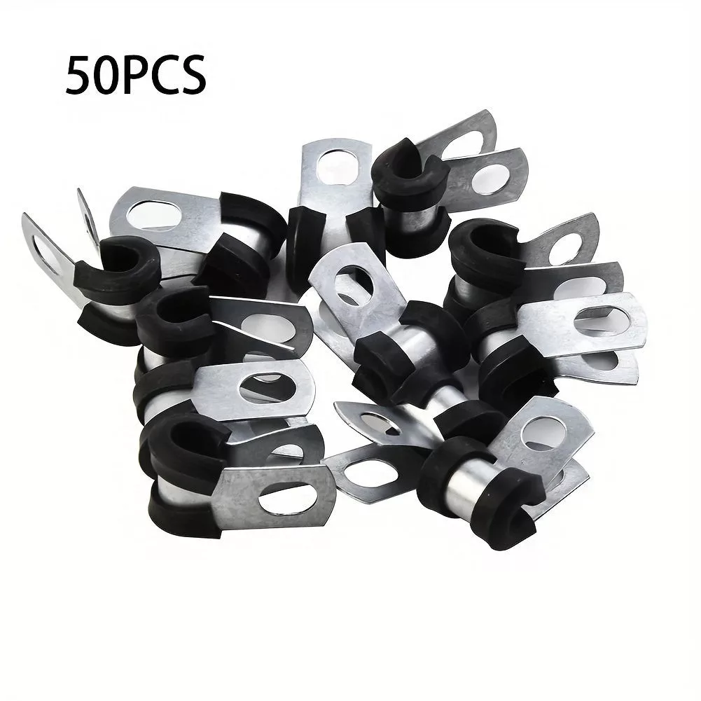 50 Stück Edelstahl-Bremsschlauchschellen mit Gummifutter