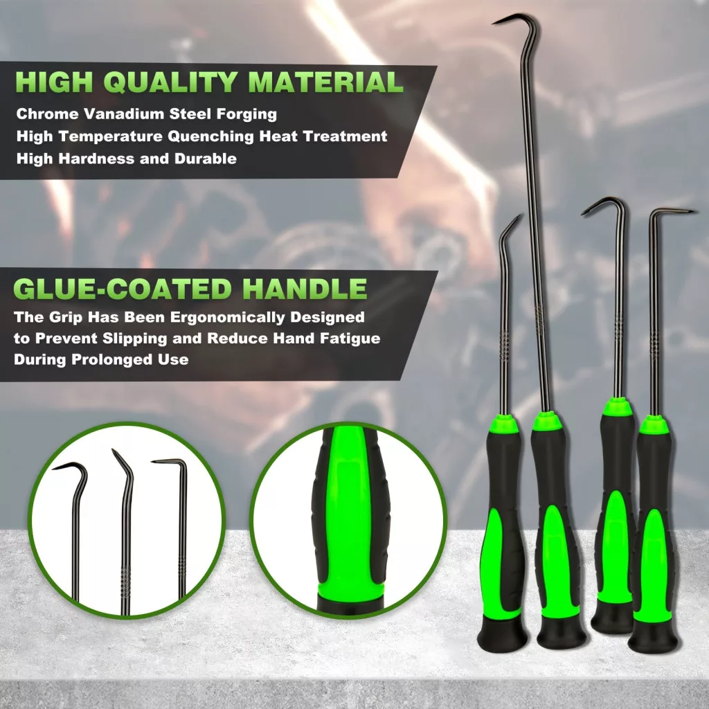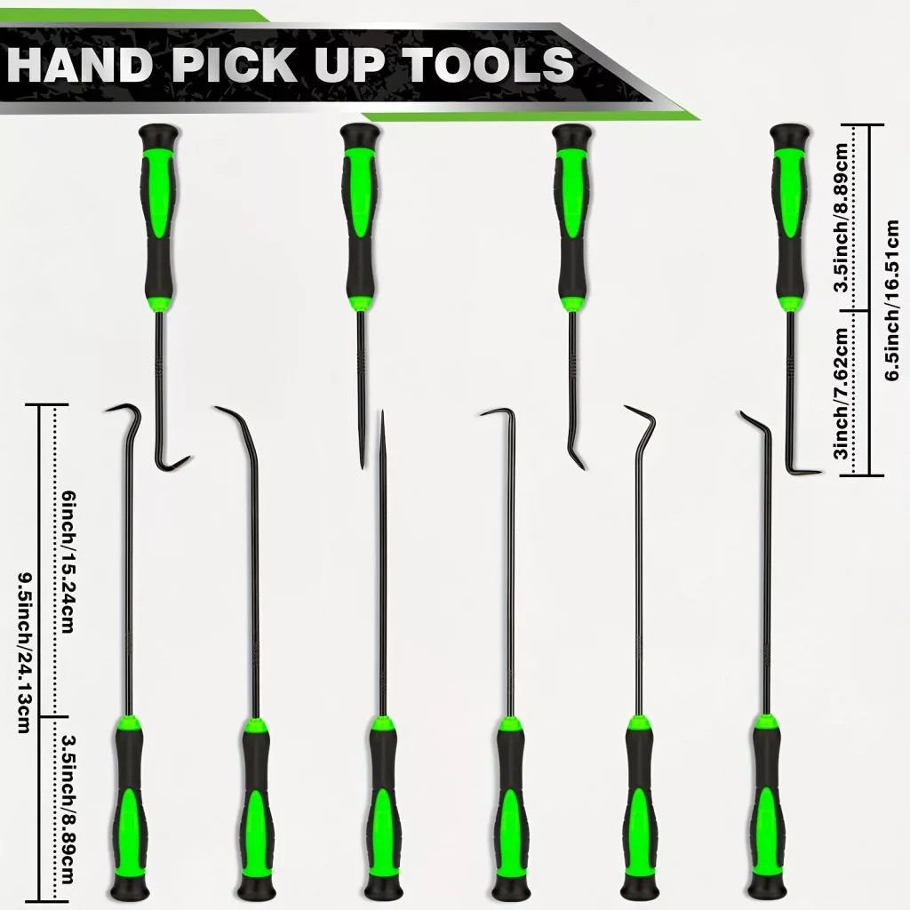Das Set wird in einer praktischen Aufbewahrungsbox geliefert, die sicherstellt, dass alle Werkzeuge immer griffbereit sind und vor Beschädigungen geschützt werden. Egal, ob du ein professioneller Automechaniker bist oder einfach nur zuverlässige Werkzeuge für die Wartung deines eigenen Autos suchst, dieses Pinzetten- und Haken-Set erfüllt alle Anforderungen. Verpasse nicht die Gelegenheit, mit den besten Werkzeugen zu arbeiten!