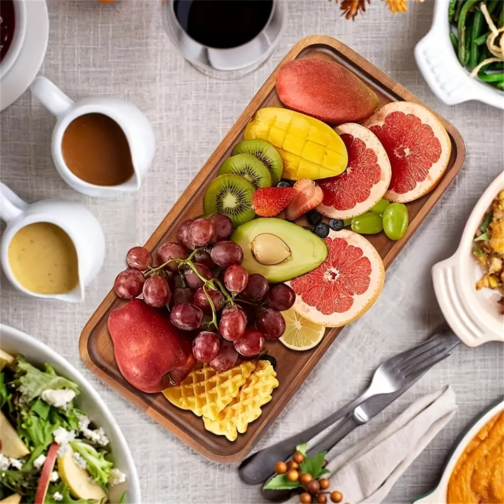 Vielseitiges Holz-Serviertablett – Perfekt für Kaffee, Tee, Schmuckpräsentation und Aufbewahrung, Obst, Speisen, Frühstück und Abendessen – Gestreiftes Design, Ideal für Zuhause, Küche, Restaurant
