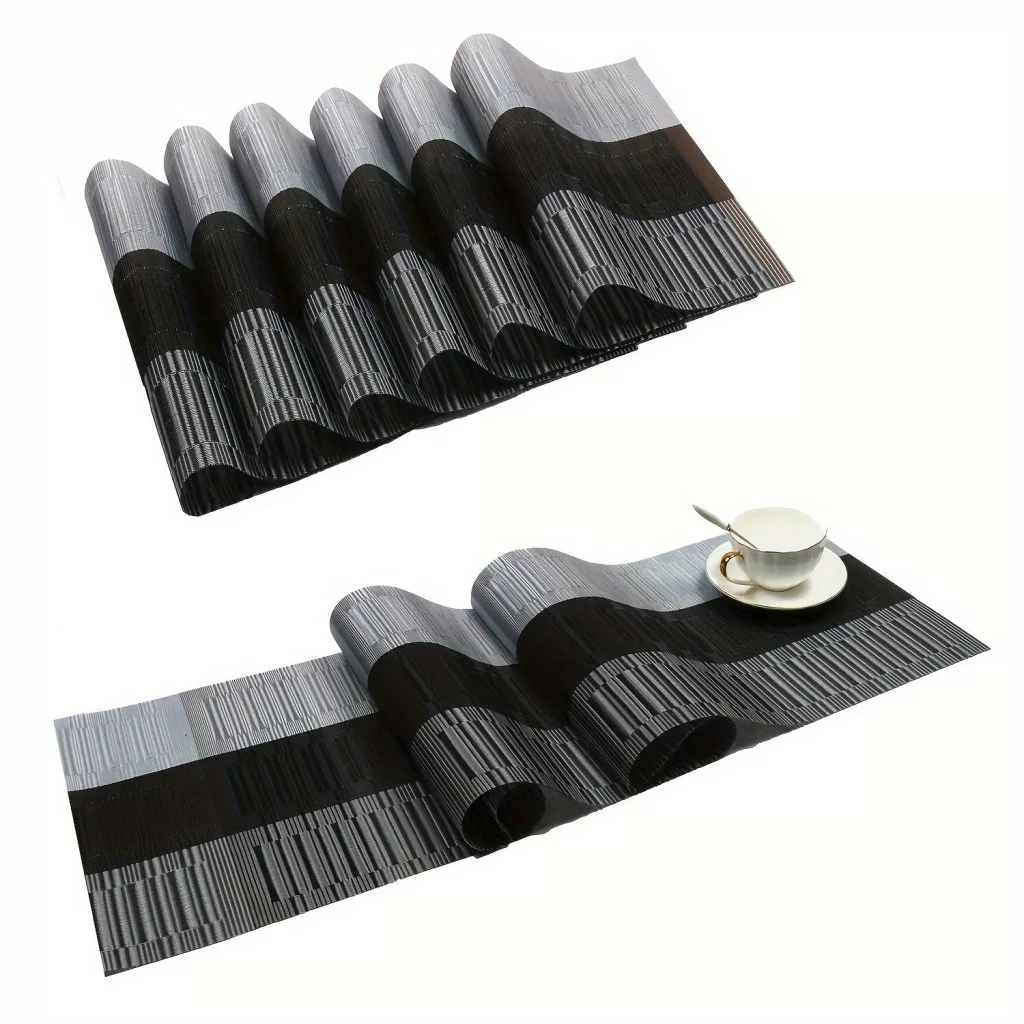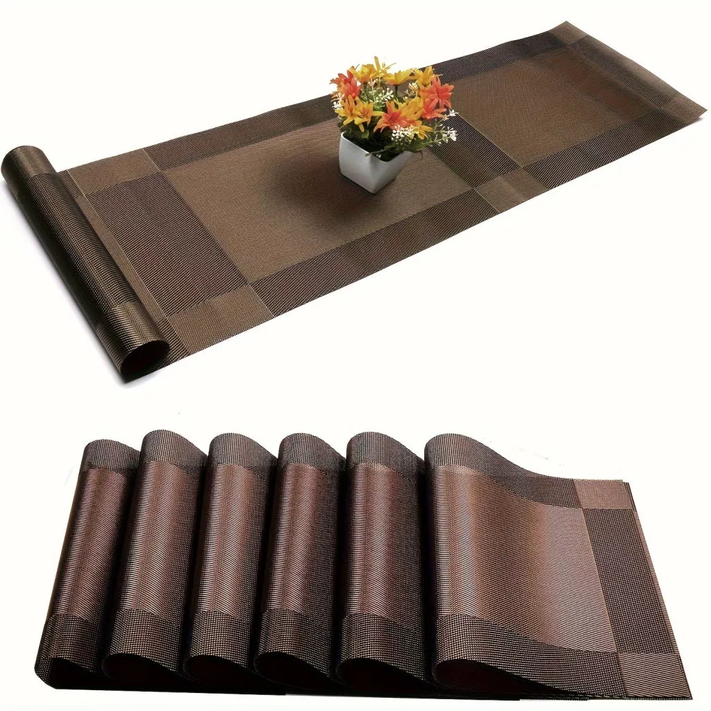 7-teiliges PVC-Tischdeckenset im europäischen Stil, rutschfest, hitzebeständig für Esszimmer