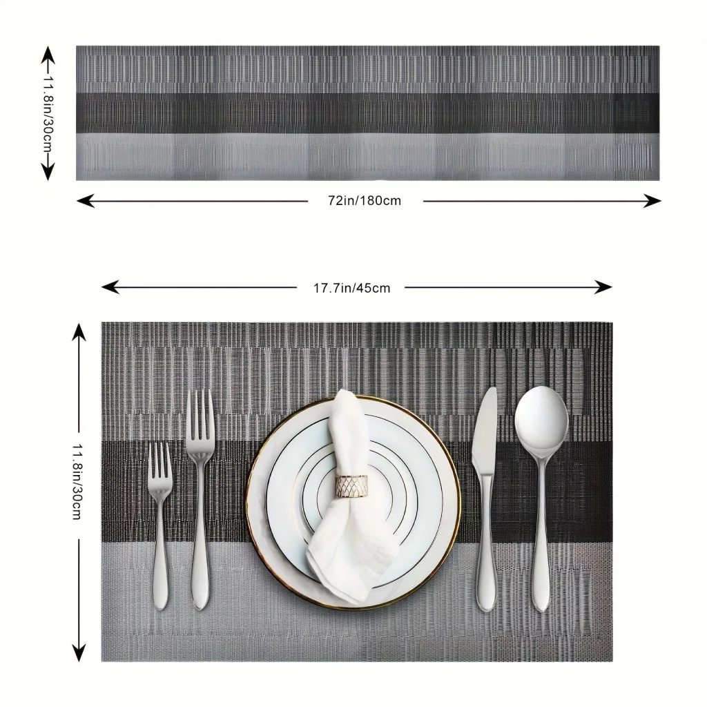 Wenn du genug von gewöhnlichen Tischdecken hast und nach etwas Besonderem suchst, dann ist dieses Set genau das Richtige für dich! Das moderne und elegante Design wird dein Esszimmer garantiert aufwerten, während die praktischen Eigenschaften dein Leben erleichtern. Die rutschfeste und hitzebeständige Oberfläche bietet Schutz im täglichen Gebrauch, sodass dein Tisch immer sicher ist. Und dank des leicht zu reinigenden Materials musst du dir keine Sorgen mehr über hartnäckige Flecken machen. Warum also nicht diese stilvolle und praktische Lösung wählen, mit der jede Mahlzeit zum Erlebnis wird?