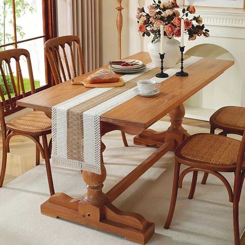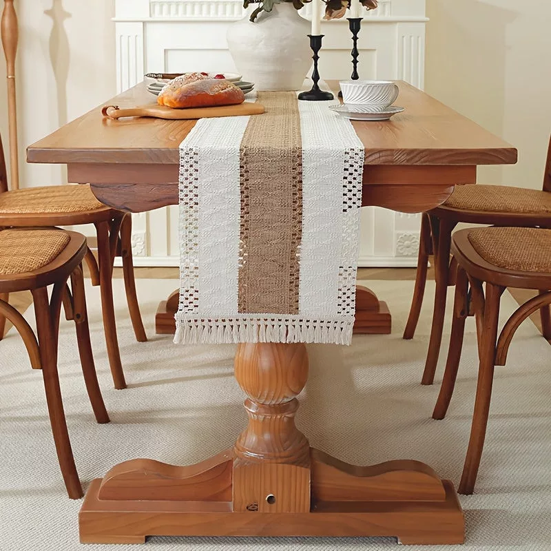 Die Quasten des Tischläufers verleihen ihm einen einzigartigen Stil, der sowohl in moderne als auch klassische Interieurs perfekt passt. Die natürliche Textur des Materials und der Zauber des Handwebens schaffen eine Atmosphäre, die dein Esszimmer gemütlich und heimelig macht. Egal, ob du nach einem Accessoire für alltägliche Abendessen oder besondere Anlässe suchst, dieser Tischläufer ist in jedem Fall eine beeindruckende Wahl.