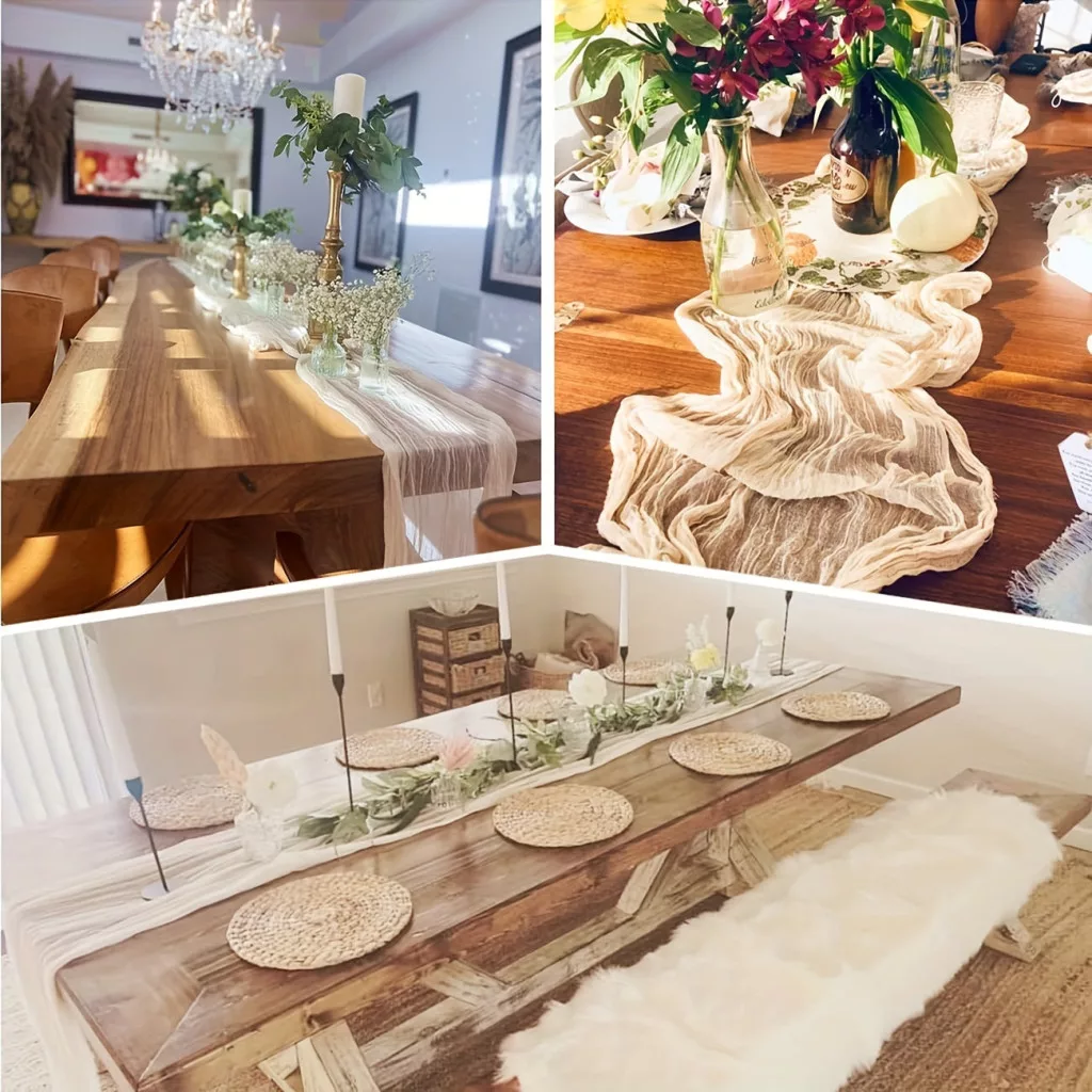 (Stil und Praktikabilität) Der bohemien-stilvolle Tischläufer ist die ideale Wahl für alle, die leichte, aber dennoch raffinierte Dekorationen lieben. Sein Material ist langlebig und bewahrt seine Schönheit über lange Zeit, zudem ist er leicht zu reinigen, was besonders im Alltag von Vorteil ist. Ob bei einem romantischen Dinner oder einem Treffen mit Freunden, dieser Läufer wird deine Gäste garantiert beeindrucken.
