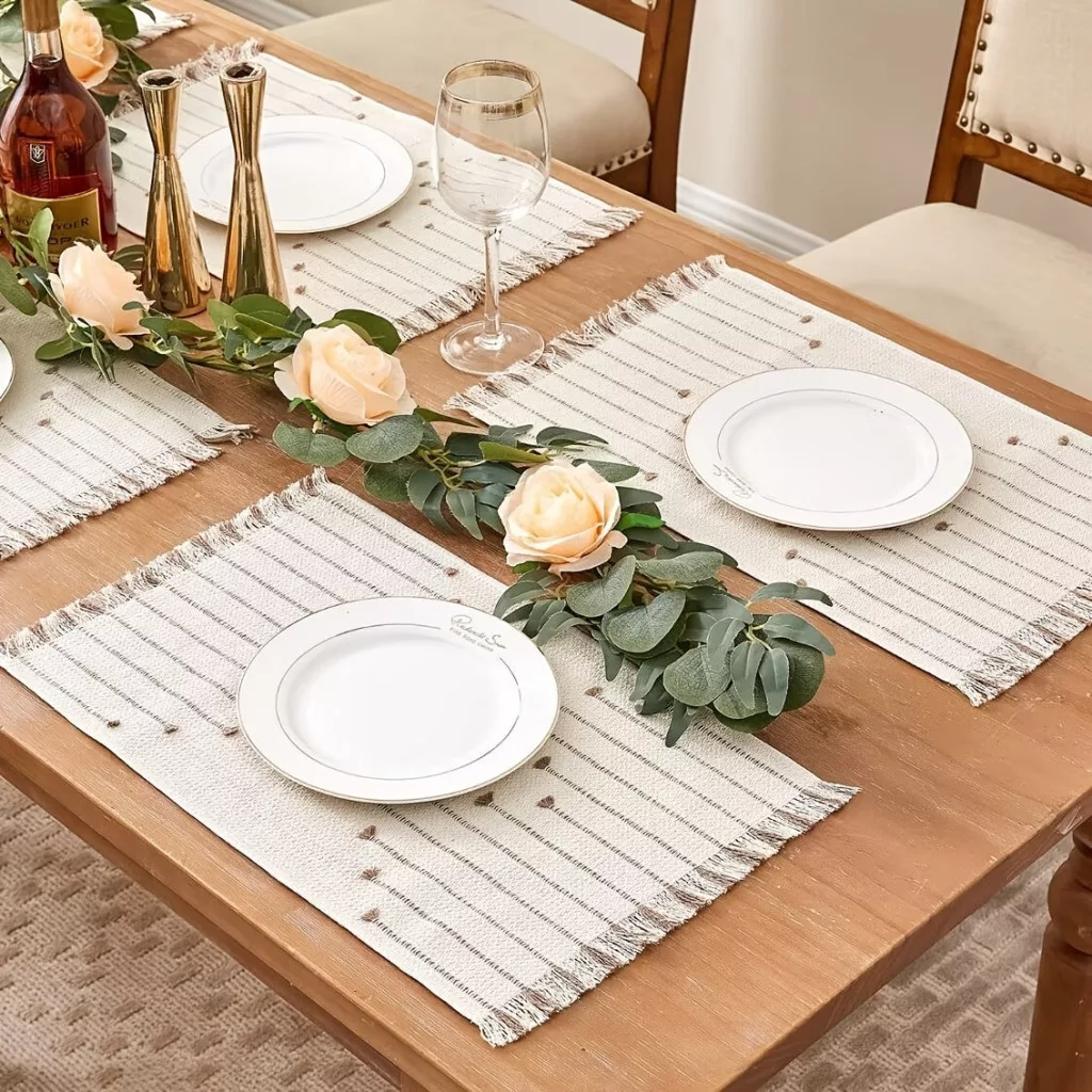 Entdecke das neue Lieblingsaccessoire für dein Zuhause: den Tischläufer aus natürlichen Materialien! Dieses beeindruckende Stück ist nicht nur praktisch, sondern bringt auch Stil in dein Esszimmer. Das minimalistische Design und die natürlichen Farben passen perfekt zu jedem Interieur, sei es modern oder traditionell. Der Tischläufer hebt deine Mahlzeiten elegant hervor und schützt gleichzeitig den Tisch im täglichen Gebrauch.