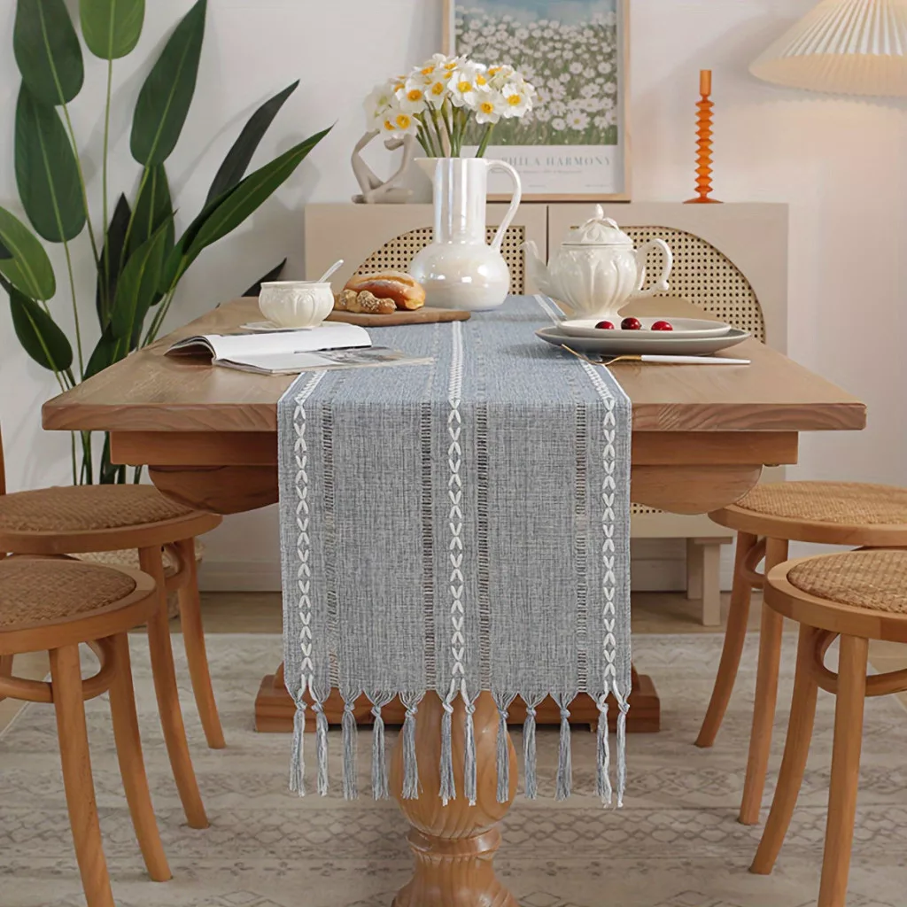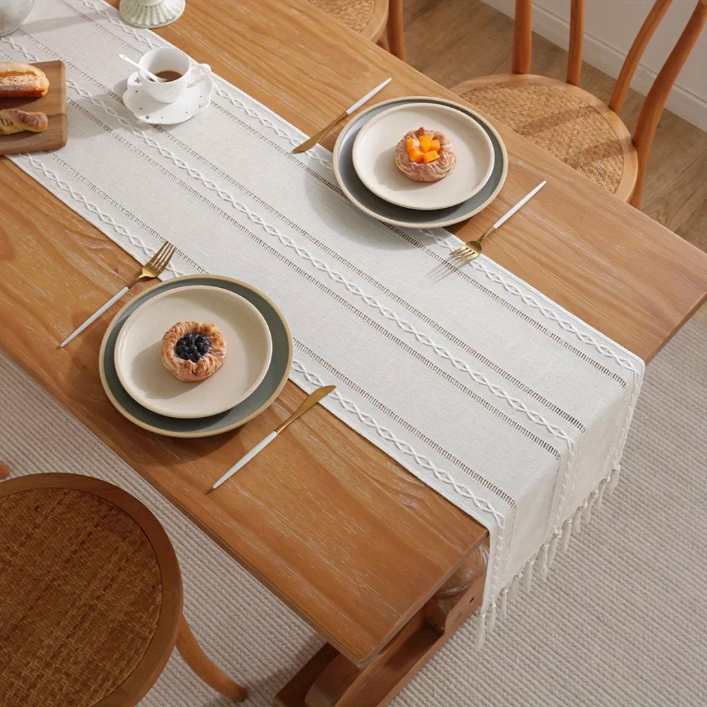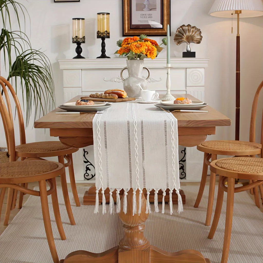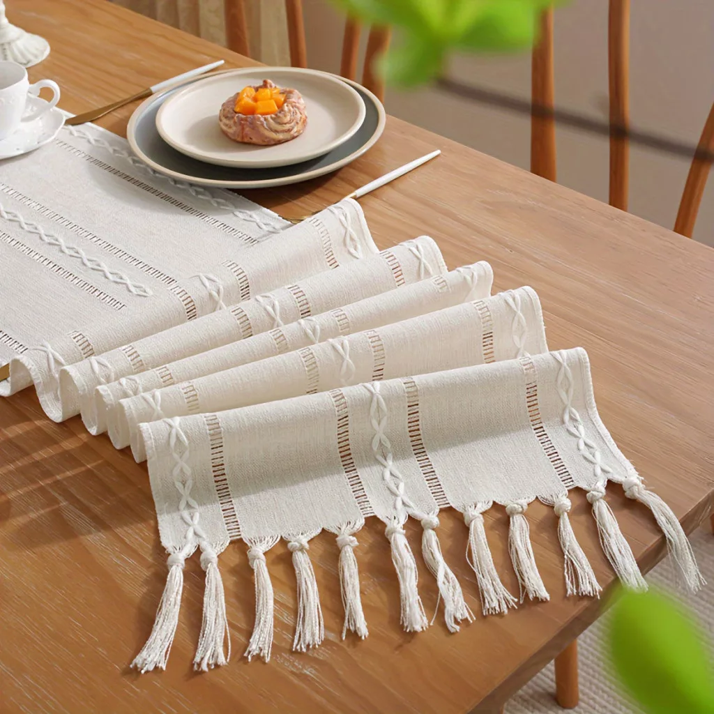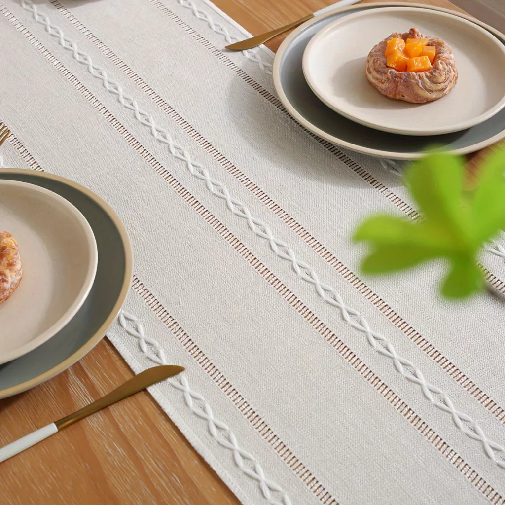 Der Tischläufer bietet nicht nur ein ästhetisches Erlebnis, sondern ist auch praktisch: Er schützt den Tisch vor Kratzern und Flecken. Er lässt sich leicht reinigen, sodass du dir im Alltag keine Sorgen um hartnäckige Verschmutzungen machen musst. Wähle diesen weißen Tischläufer, um Harmonie in jedes Detail deines Zuhauses zu bringen!