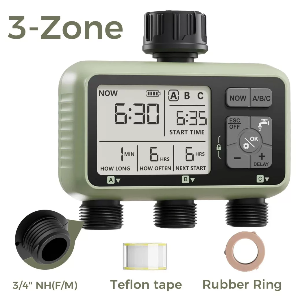 Gartenbewässerungs-Timer – 3-Zonen programmierbarer automatischer Bewässerungs-Timer, Regenverzögerung