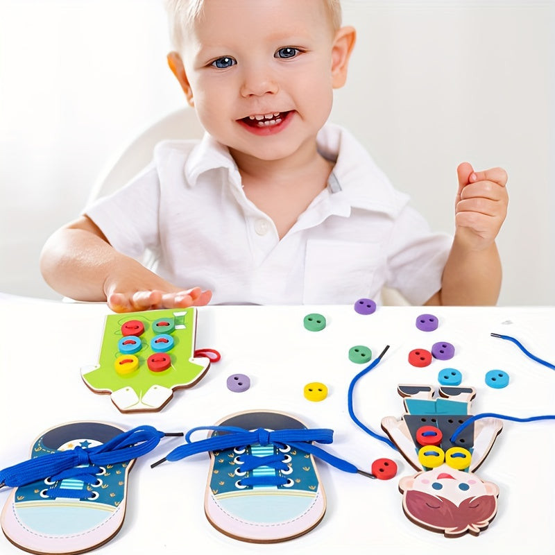 12-teiliges Holzbekleidungs- und Schuhknopf-Schnürset