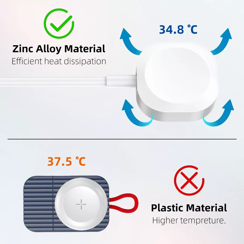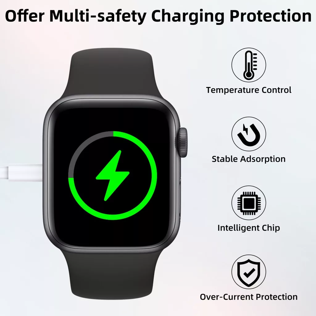 • (Schnelles Laden) Die optimierte Ladetechnologie ermöglicht eine schnelle und effiziente Aufladung der Apple Watch, sodass du weniger Zeit warten musst, um sie wieder zu nutzen.