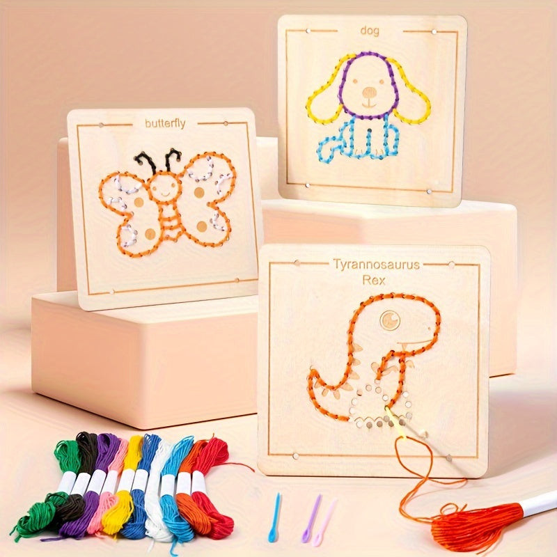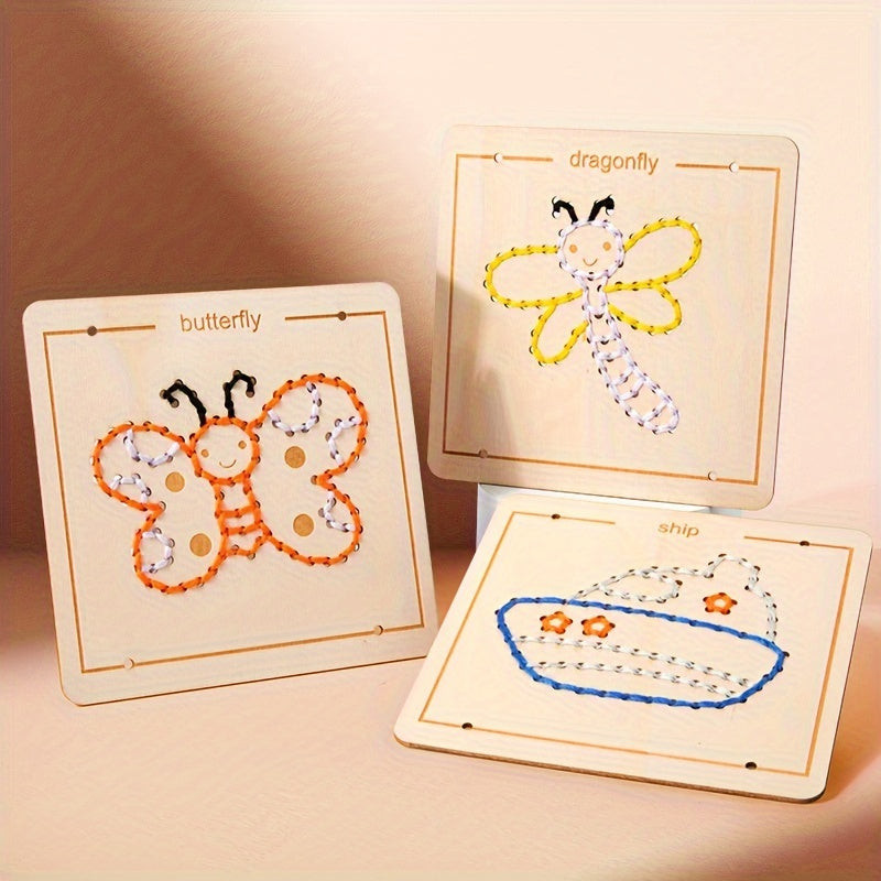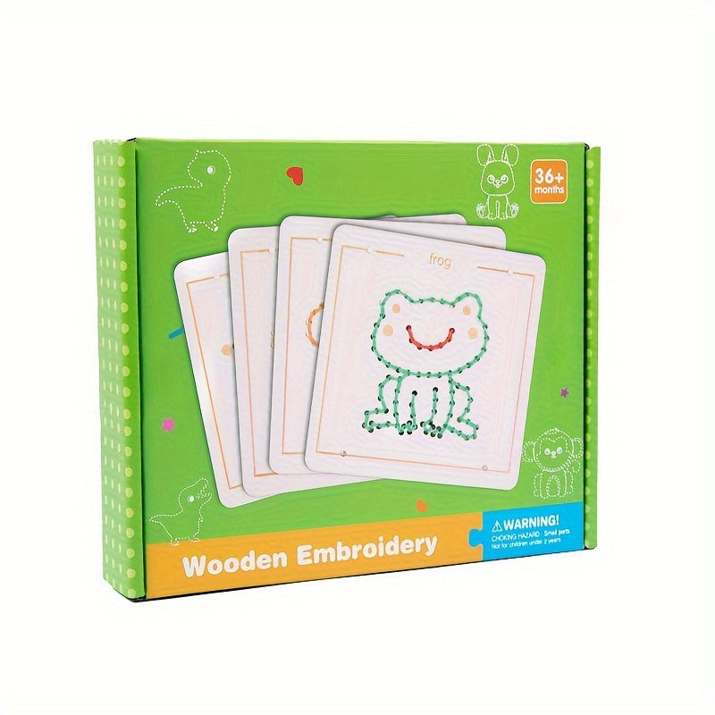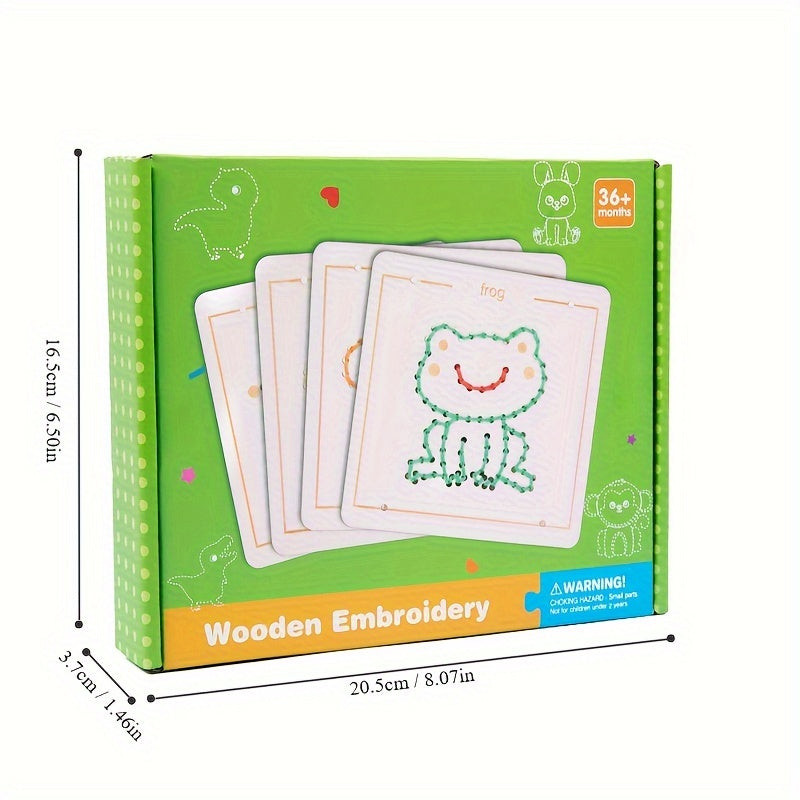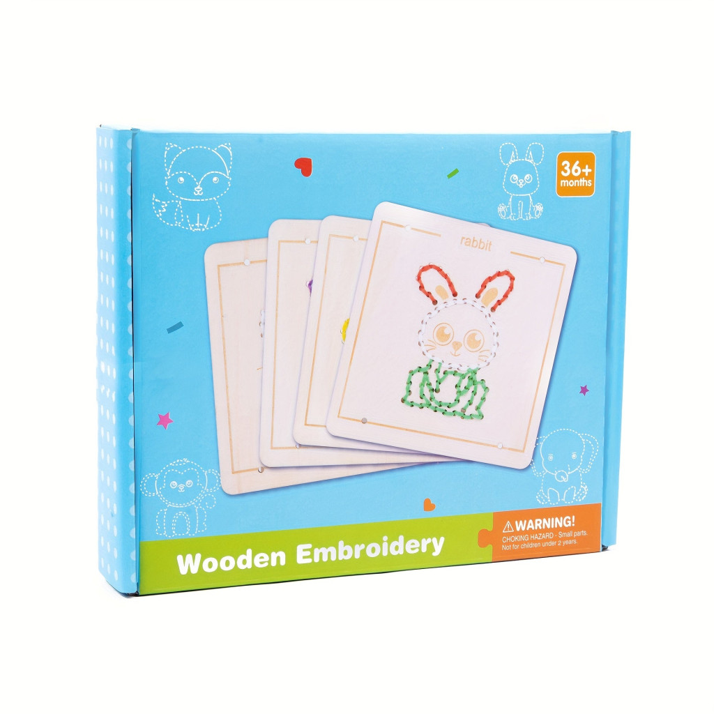 Beim Spielen können die Kinder verschiedene Fäden durch die Löcher im Rahmen ziehen und so ihre eigenen einzigartigen Kunstwerke schaffen. Das interaktive Erlebnis hilft, Konzentration und Geduld zu entwickeln, während es den Kindern Raum für kreative Selbstdarstellung bietet. Dieser Holz-Stickrahmen ist das ideale Geschenk für jeden kleinen Künstler, der gerne in die Welt der Farben und Formen eintaucht.