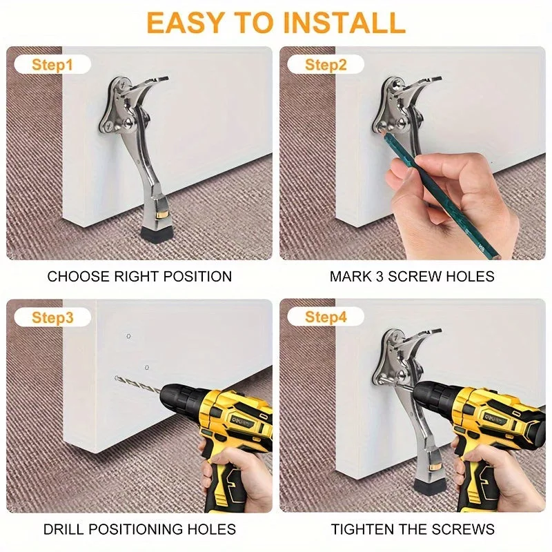 Die Installation des Türstoppers ist kinderleicht und erfordert keine Fachkenntnisse, sodass jeder ihn problemlos zu Hause anbringen kann. Die polierte Metalloberfläche verleiht ein elegantes Aussehen, das sowohl zu modernen als auch klassischen Interieurs perfekt passt. Wähle diese praktische und ästhetische Lösung, um dein Zuhause stets geschützt und stilvoll zu halten.