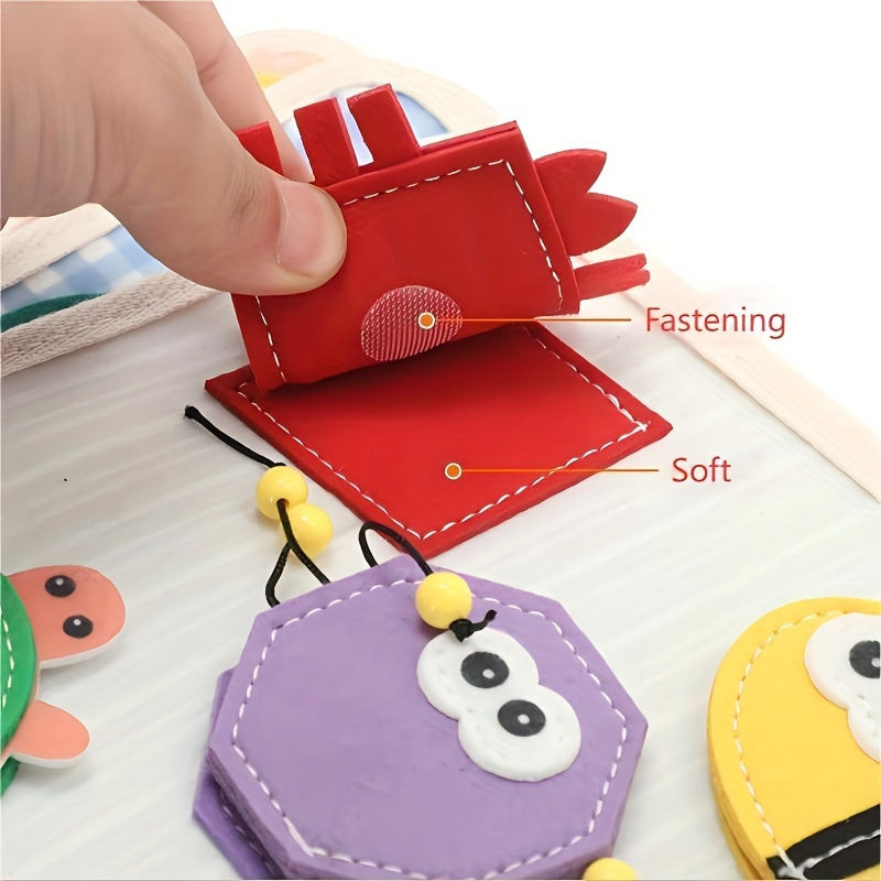 Die Aktivitätstafel ist mit verschiedenen Texturen und Farben ausgestattet, die die Sinne der Kinder anregen. Die Tafel enthält verschiedene bewegliche Elemente, die den Kindern helfen, Ursache-Wirkungs-Zusammenhänge zu verstehen und die Hand-Auge-Koordination zu fördern. Eine ideale Wahl für das Spielen zu Hause oder unterwegs, da sie leicht tragbar ist.