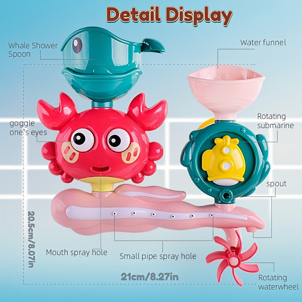 Entdecke eine neue Dimension des Badens mit dem Badewannenset mit Saugnäpfen, das sowohl bei Kindern als auch bei Eltern beliebt sein wird! Dieses interaktive Spielzeug macht nicht nur Spaß, sondern fördert auch die motorischen Fähigkeiten der Kleinen. Das drehbare Wasserrad und die Spritzfunktion zaubern garantiert ein Lächeln auf jedes Gesicht, während das Badezimmer in einen fröhlichen Spielplatz verwandelt wird.
