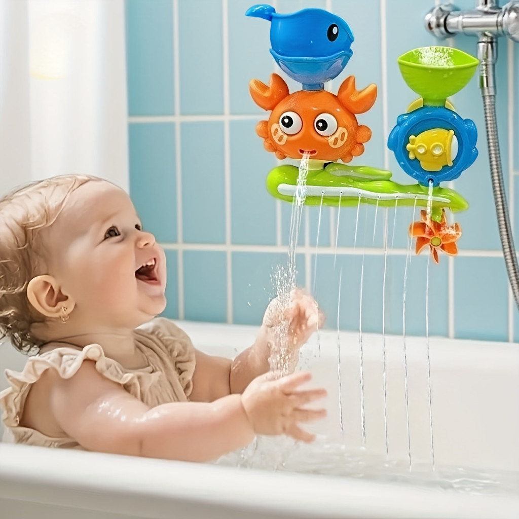 Interaktives Saugnapf-Badeset mit drehbarem Wasserrad und Spritzfunktion