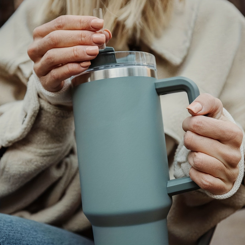 Mit dieser doppelwandigen, rostfreien Edelstahl-Wasserflasche mit großem Fassungsvermögen wirst du alle beeindrucken! Die Flasche hat einen praktischen Griff und einen Trinkhalm-Deckel, sodass du überall leicht und bequem daraus trinken kannst. Der aus Stahl gefertigte Behälter sollte von Hand gewaschen werden, ist aber frei von gesundheitsschädlichem BPA. Sie eignet sich auch hervorragend als Geschenk zum Geburtstag oder zu Weihnachten!