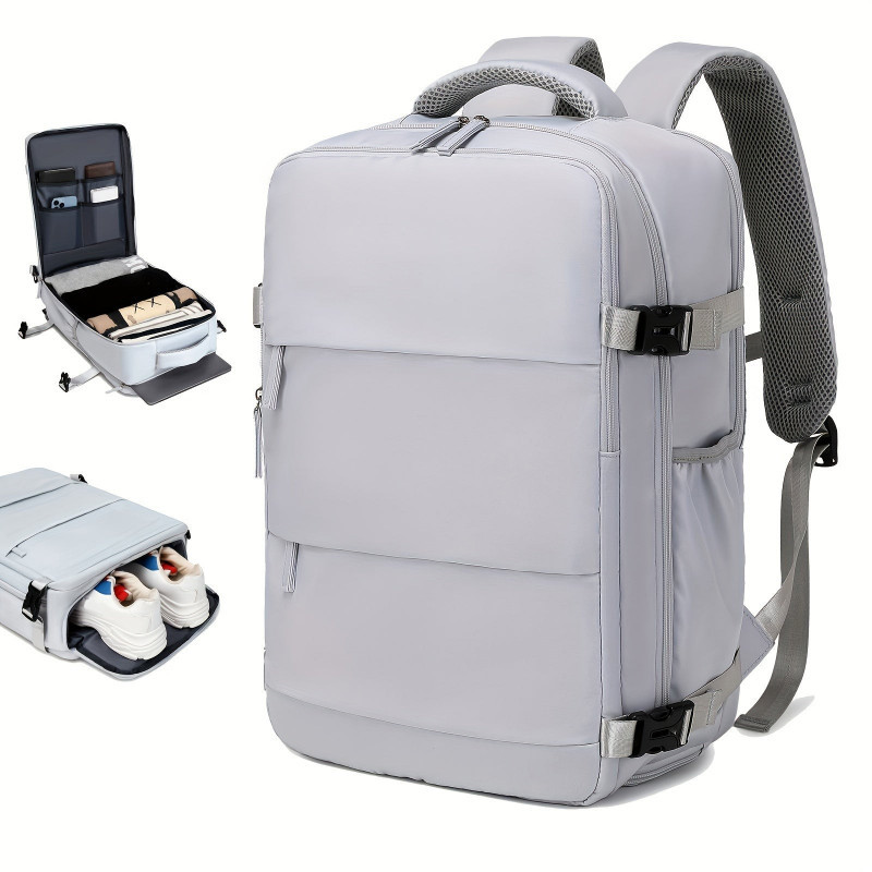 Dieser große Reiserucksack mit hoher Kapazität ist das Nonplusultra unter den Super-Taschen! Perfekt für unterwegs, wenn du alles dabei haben möchtest, denn er bietet jede Menge Platz für deine Sachen. Er hat sogar ein separates Schuhfach, damit du deine Sachen von den Schuhen getrennt halten kannst. Das Material ist leicht und strapazierfähig – genau das, was du für deine Reisen brauchst. Außerdem gibt es einen integrierten Ladeanschluss, damit dein Handy nie leer wird!