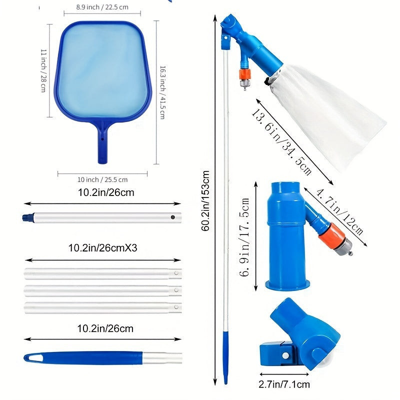 Entdecke dieses Pool-Reinigungsset! Dieses Mini-Staubsauger-Set ist ideal für die einfache Reinigung deines Schwimm- oder Spa-Pools. Der Pool-Staubsaugerkopf und das manuelle Kescher-Werkzeug entfernen mühelos Schmutz, der im Pool schwimmt. Das blaue Design verleiht dem Staubsauger ein frisches und modernes Aussehen, was ihn zur idealen Wahl für die Poolpflege macht.