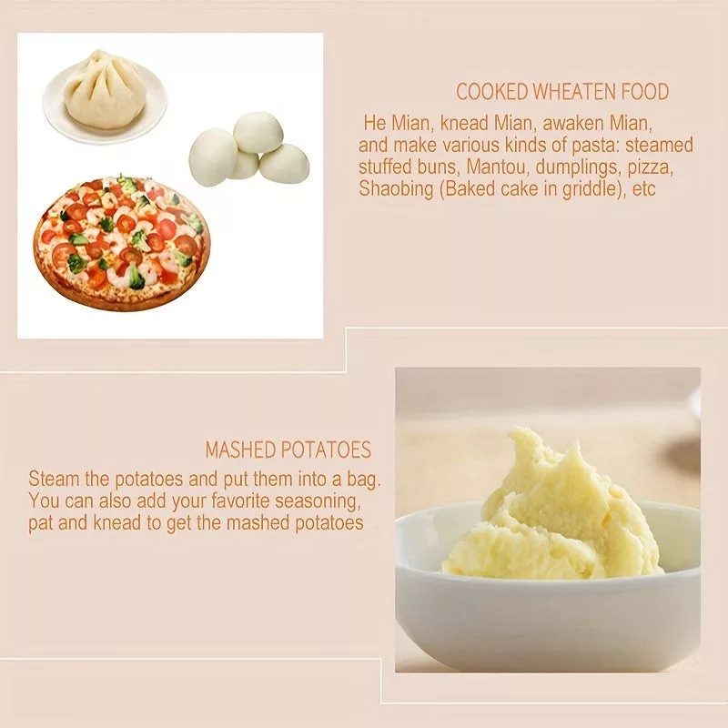 Wenn du das Backen und Kochen liebst, wird dieser Silikon-Knetbeutel garantiert dein Favorit! Mit diesem weißen Teigknetbeutel kannst du sogar deine eigene kleine Bäckerei zu Hause eröffnen. Bereite darin köstliche Brote, Gebäck, Pizzen und Backwaren zu!