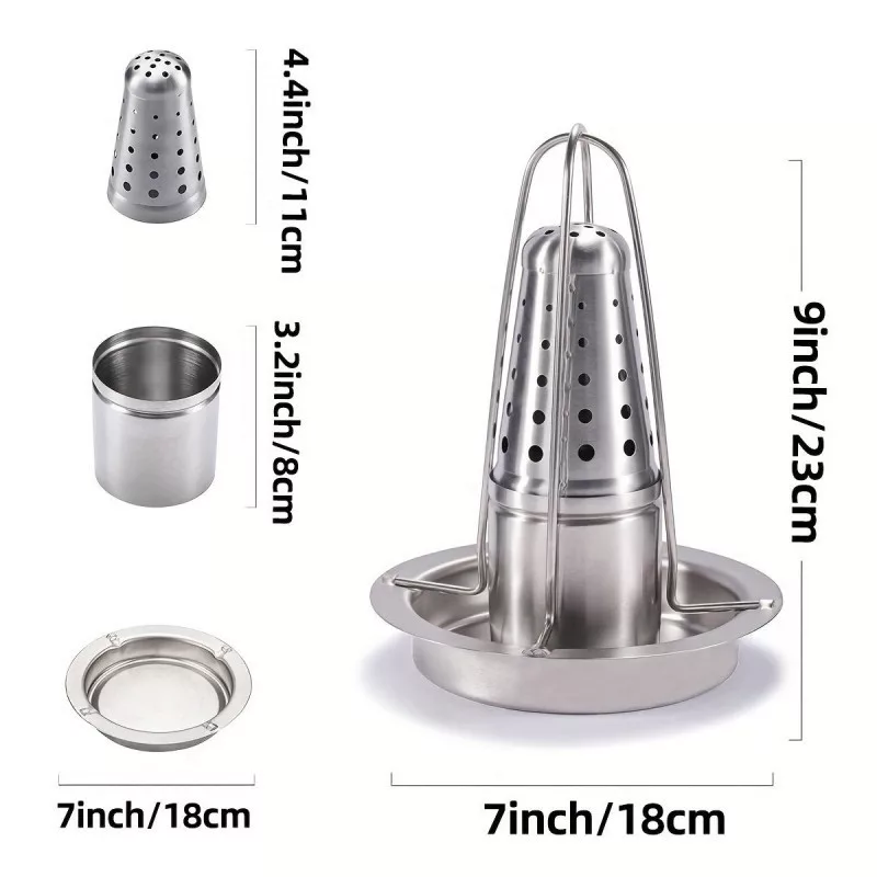 Warum solltest du es kaufen? Dieser Hähnchenbräter ist die ideale Wahl für Grillfans, die gerne besondere und schmackhafte Gerichte zubereiten. Das vertikale Braten ermöglicht, dass jede Seite gleichmäßig gart, sodass perfekt gebratenes und würziges Hähnchen garantiert ist. Zudem ist er durch sein praktisches Design und seine einfache Handhabung die ideale Wahl für jede Grillparty und festliche Veranstaltung. Verpasse nicht diesen Ständer, wenn du zu Hause besondere und köstliche Gerichte zubereiten möchtest!
