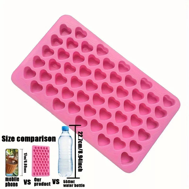 • Größe: 55 Löcher: Das Tablett enthält 55 Löcher, sodass du viele mini-herzförmige Formen auf einmal herstellen kannst.