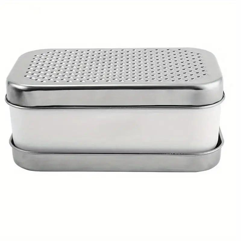 Edelstahlreibe, Handgemüse- und Obstreibe, Mehrzweckschneider mit Auffangbehälter