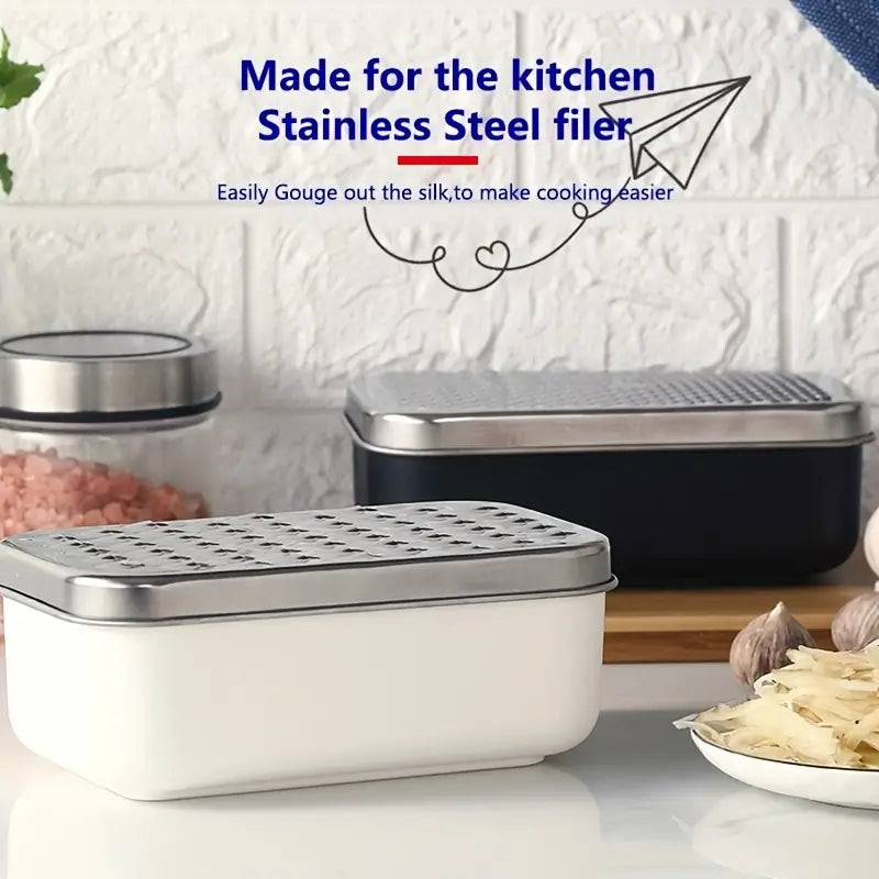 Dieses Edelstahlreibe wird der neue Star in deiner Küche! Ein handlicher Gemüse- und Obstschneider, der dein Leben erleichtert. Du brauchst keine verschiedenen Geräte mehr, denn dieser multifunktionale Fruchtschneider kann alles, was du brauchst. Dank des Schneidbehälters bleibt deine Arbeitsfläche sauber und das Aufräumen wird einfacher.