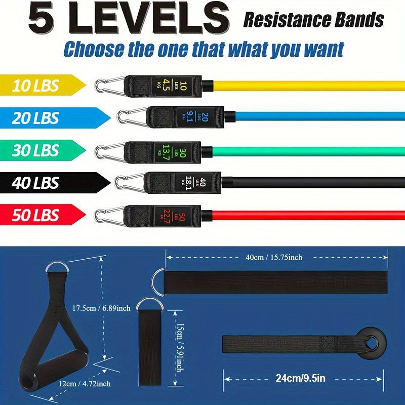 • Abwechslung: Die verschiedenen Widerstandsstufen im Set ermöglichen es dir, bei jedem Training neue Herausforderungen zu meistern und kontinuierlich Fortschritte zu machen.