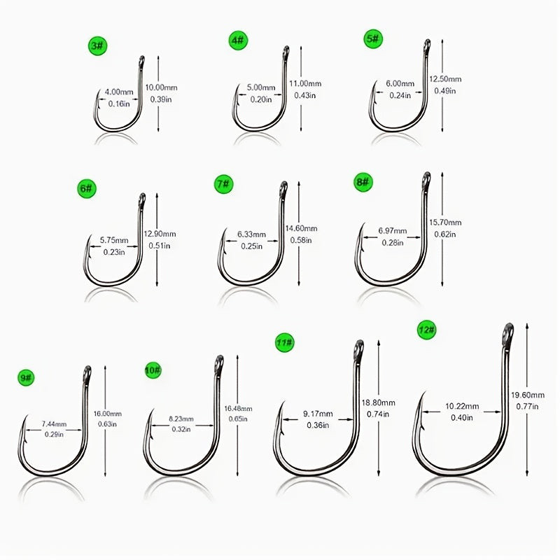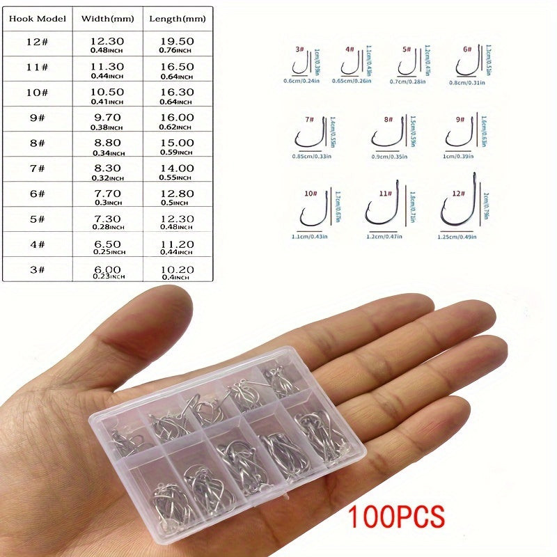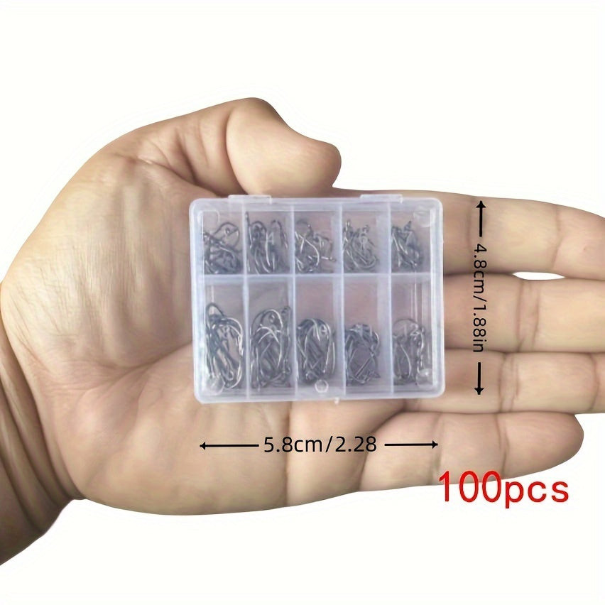 • (Menge) 100-teiliges Set: Dieses Set enthält 100 Haken in verschiedenen Größen, sodass du für jede Angelsituation gerüstet bist.
