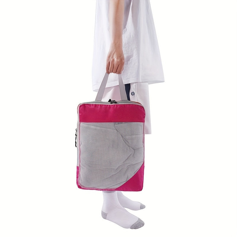 Beim Reisen ist Platzsparen eines der wichtigsten Dinge, und genau dabei hilft dir diese Kompressionstasche. Perfekt für alle, die Abenteuer lieben, aber nicht auf Stil und Praktikabilität verzichten möchten. Das Material der Tasche ist leicht, aber extrem langlebig, sodass du dir keine Sorgen machen musst, dass sie bei vielen Reisen abnutzt. Die Kombination aus modernem Design und praktischer Gestaltung sorgt dafür, dass jede deiner Reisen bequem und organisiert verläuft. Dank des intelligenten Kompressionssystems kannst du mehr Kleidung einpacken, ohne die Größe der Tasche zu erhöhen. So kannst du bei jedem Abenteuer elegant und effizient reisen.