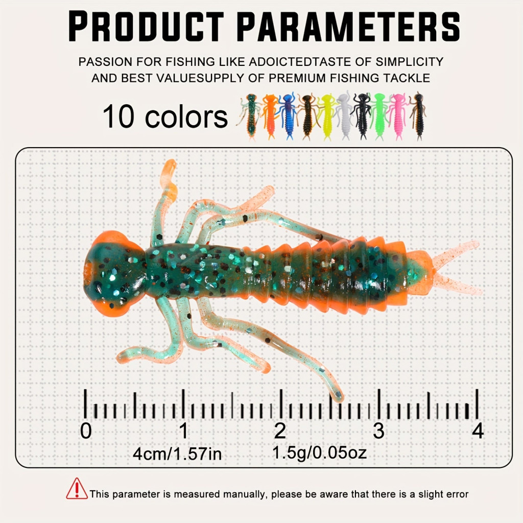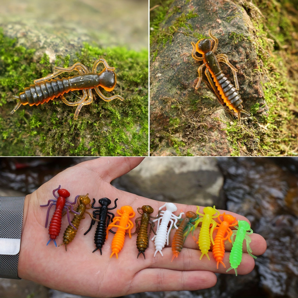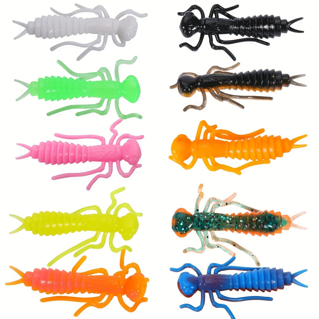 • (Menge) Zehn verschiedene Köder: Das Set enthält zehn einzigartige Stücke, die jeweils eine andere Insektenart imitieren und somit vielfältige Fangmöglichkeiten bieten.