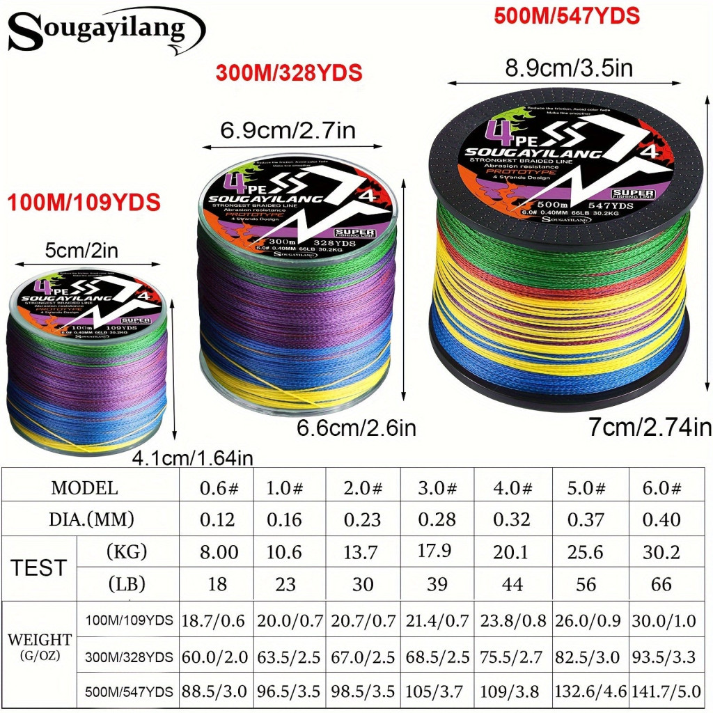 Sougayilang 4-fädige PE geflochtene Angelschnur - stark, langlebig und haltbar