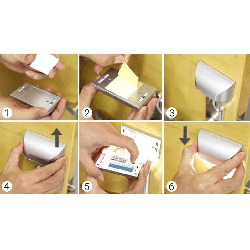 Die Installation ist kinderleicht. Mit den im Paket enthaltenen doppelseitigen Klebestreifen kannst du das Produkt ohne Bohren befestigen. Dank der Klebestreifen lässt sich das Gerät jederzeit spurlos entfernen.