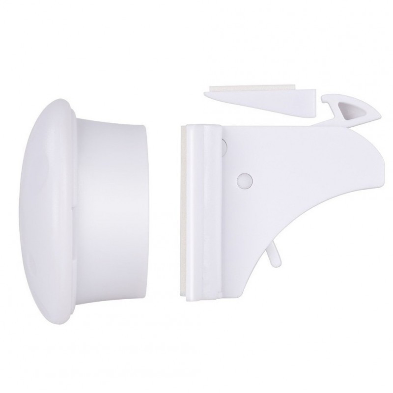 2. Klebe den "pistolengriffartigen" Teil an die innere Wand des Schranks oder der Schublade, der Knopfteil haftet von der anderen Seite, wenn du öffnen möchtest.