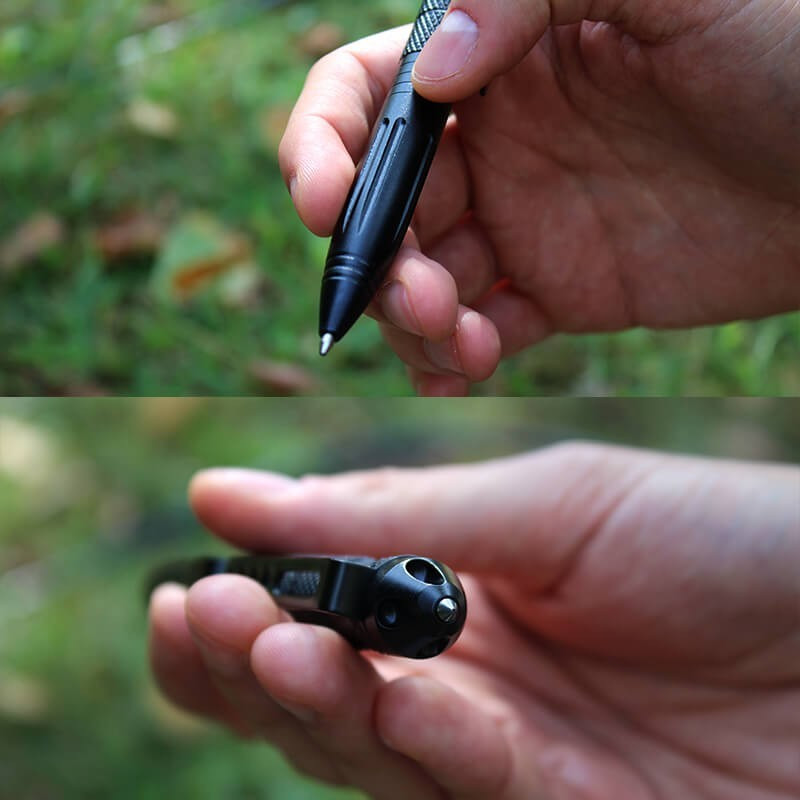 Federleicht und robust. Die Karbidspitze kannst du im Notfall zum Glasbrechen verwenden. Am anderen Ende ist ein Stift, in dem du die Standard-Mine austauschen kannst. Auch diesen kannst du an deiner Kleidung, deinem Rucksack oder wo es dir bequem ist, befestigen.
