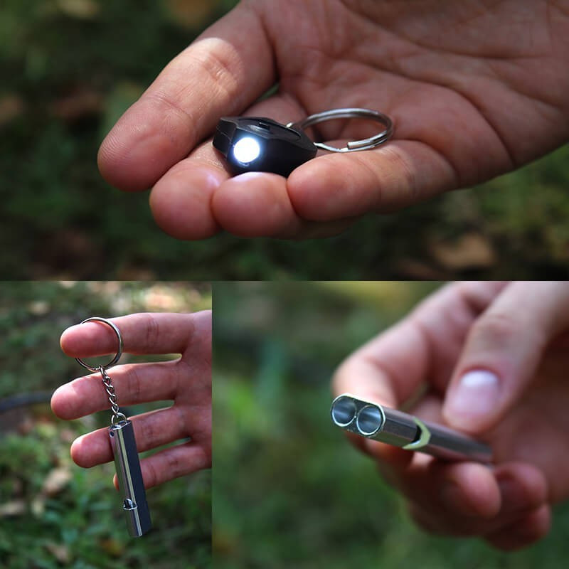 Solche Pfeifen werden oft von Rettungskräften verwendet. Sie enthält keine beweglichen Teile und Wasser verstopft sie nicht, sodass der scharfe Warnruf frei entweichen kann. Das Design mit zwei Kammern erzeugt einen Ton von bis zu 180 Dezibel, sodass du im Notfall sicher Aufmerksamkeit auf dich ziehen kannst, selbst aus einer halben Meile Entfernung. Nur 11 g schwer, du kannst sie um den Hals tragen oder an deinem Gepäck befestigen.