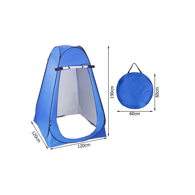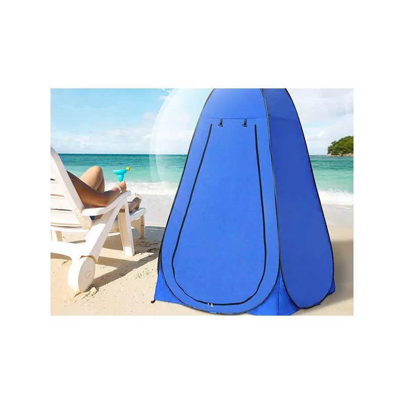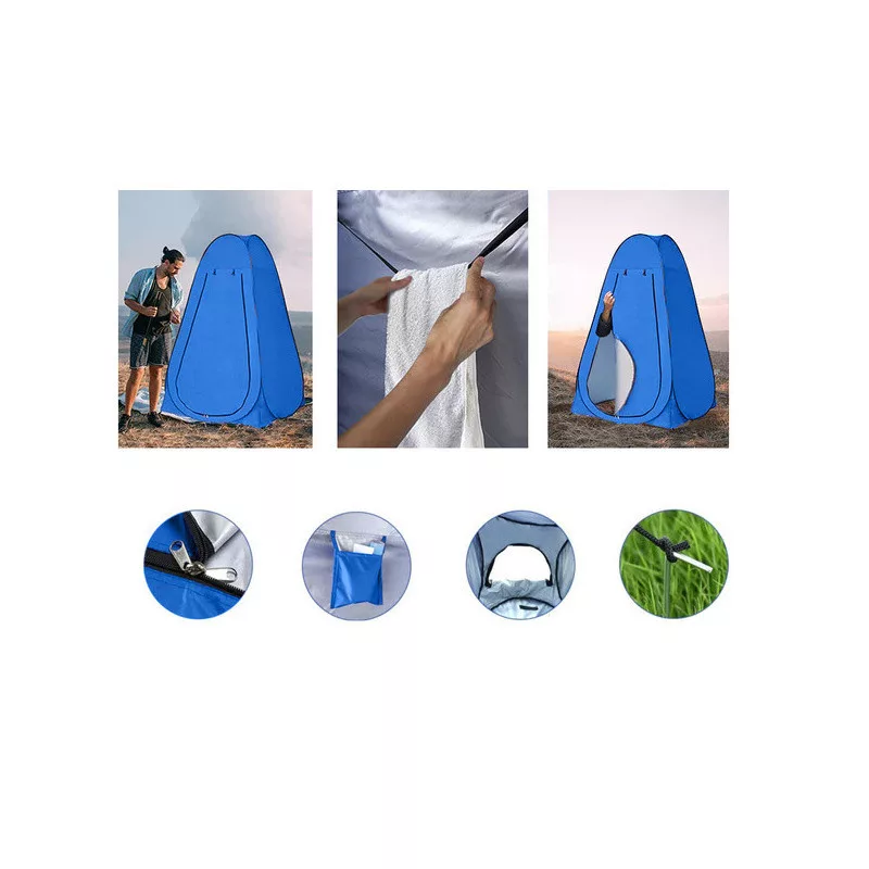 Dieses BEACH TENT CHANGING ROOM SHOWER TOILET WC ist ein perfektes All-in-One-Zelt für deine Abenteuer, das als Umkleidekabine, Dusche und WC dient. In einer einfachen Konstruktion findest du alles, was du brauchst. Im Inneren des Zeltes gibt es eine geräumige Tasche für Zubehör, einen Haken zum Aufhängen deiner Kleidung und ein kleines Fenster für bessere Luftzirkulation. Du ziehst es einfach aus der Tragetasche und es entfaltet sich von selbst, inklusive Zubehör zur Befestigung am Boden. Zusammengefaltet nimmt es kaum Platz ein und kann in einer praktischen Tragetasche verstaut werden, die du leicht mitnehmen kannst. Das Zelt besteht aus wasserfestem Material, sodass du dir keine Sorgen um das Wetter machen musst. Zudem schützt es vor Verschmutzungen und kann bei Bedarf einfach mit einem feuchten Tuch abgewischt werden. Am Ende des Zeltes befinden sich spezielle Löcher für die Heringe, sodass es auch bei starkem Wind stabil steht.