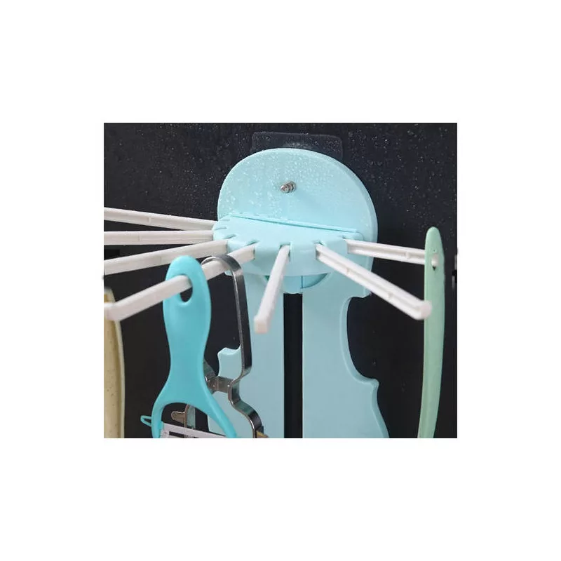 Der faltbare Organizer für Handtuchhalter in Bad und Küche ist ideal zur Aufbewahrung verschiedener oft genutzter Haushaltsgegenstände. Perfekt zum Aufhängen praktischer Utensilien in der Küche sowie Schwämme, Waschlappen oder Handtücher im Badezimmer. Der Halter kann mit zwei Klebestreifen oder Schrauben befestigt werden. Er verfügt über 7 lange, klappbare Arme, die sich schnell zusammenklappen lassen, um Platz zu sparen, wenn er nicht in Gebrauch ist.