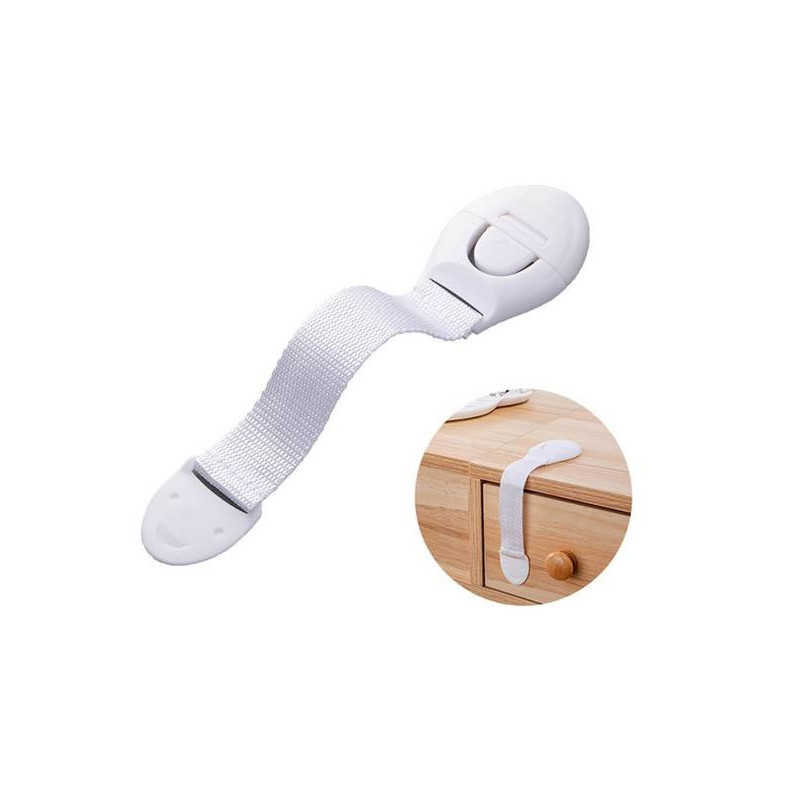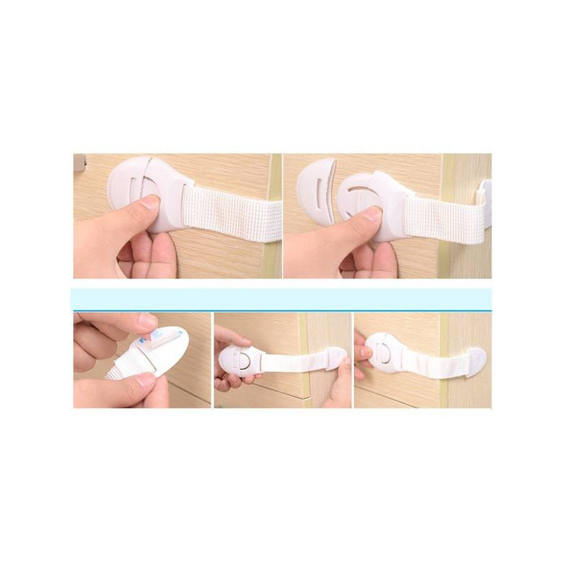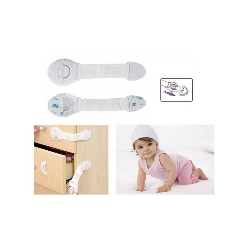 Das Sicherungssystem ist für nahezu alle Möbel und Küchengeräte geeignet. Dank des doppelseitigen Klebebands kann das Schloss überall befestigt werden. Die Sicherung verhindert, dass kleine Kinder die Schränke öffnen, ohne beaufsichtigt zu werden, und vermeidet unangenehme Unfälle wie eingeklemmte Finger oder den Zugriff auf gefährliche Produkte. Für Erwachsene ist das Schloss leicht zu bedienen. Vor dem Anbringen sollte die Oberfläche entfettet und das doppelseitige Klebeband an der gewünschten Stelle verwendet werden. Um die Sicherung zu öffnen, muss eine Seite mit der mit einem Pfeil gekennzeichneten Klemme geöffnet werden.