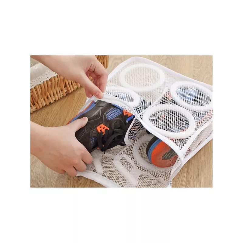 Die Netz-Waschtasche ist die ideale Lösung, um Schuhe und kleinere Kleidungsstücke während des Waschens zu schützen. Schütze deine Schuhe vor Schäden und Knitterfalten in der Waschmaschine mit dieser praktischen und leicht zu verstauenden Waschtasche!
