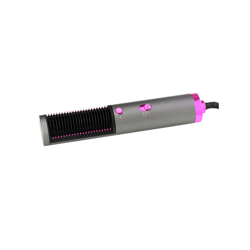 Dieses Gerät macht das Haarstyling viel einfacher und effizienter. Der Haartrockner ist leicht und liegt bequem in der Hand. Die dicht angeordneten Borsten ermöglichen ein gründliches Kämmen, während die rosa Kugeln an den Enden sanft die Kopfhaut massieren und stimulieren. Die strategisch platzierten Luftauslässe verteilen die Luft gleichmäßig während des Kämmens.